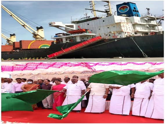 15 ஆயிரம் டன் நிவாரண பொருட்களுடன் தூத்துக்குடி துறைமுகத்தில் இருந்து கப்பல் புறப்பட்டு சென்றது. இந்த கப்பலை தமிழக உணவு துறை அமைச்சர் ர.சக்கரபாணி, சிறுபான்மையினர் நலன் மற்றும் வெளிநாடு வாழ் தமிழர் நலத்துறை அமைச்சர் செஞ்சி கே.எஸ்.மஸ்தான், சமூகநலன் மற்றும் மகளிர் உரிமைத் துறை அமைச்சர் பெ.கீதாஜீவன், மீன்வளம், மீனவர் நலன் மற்றும் கால்நடை பராமரிப்புத் துறை அமைச்சர் அனிதா ஆர்.ராதாகிருஷ்ணன் ஆகியோர் கொடியசைத்து அனுப்பி வைத்தனர்.