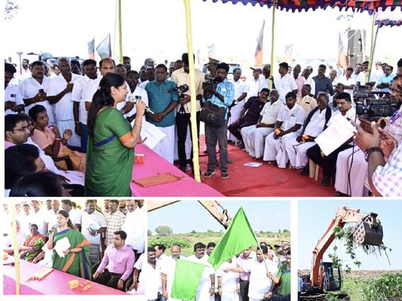 மேலும், விவசாயிகள் தங்களுக்கு தேவையான மணவை - ராஜபதி சாலையினை தங்களுடைய நிலத்தின் வழியாக மண் சாலையாக அமைத்துள்ளார்கள். அந்த சாலையினை தார் சாலையாக மாற்ற வேண்டும் என்ற கோரிக்கையும் நிறைவேற்றித்தரப்படும். கடம்பாகுளம் உபரிநீர் கால்வாய் தூர்வாறும் பணிகள் செப்டம்பர் மாதத்திற்குள் முடிக்கப்பட்டு மீண்டும் பெருமைமிகு குளமாக மாற்றப்படும் என தூத்துக்குடி நாடாளுமன்ற உறுப்பினர் கனிமொழி தெரிவித்தார்.