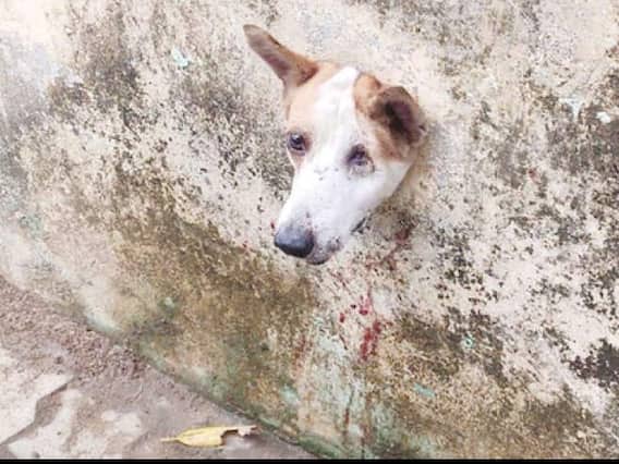 கன்னியாகுமரி அருகே உள்ள கொட்டாரம் லெட்சுமிபுரத்தில் நேற்று முன்தினம் இரவு சுற்றி திரிந்த ஒரு தெருநாய் அங்குள்ள பிரதாப் என்பவரின் வீட்டுக்குள் நுழைந்துள்ளது. பின்னர் வெளியே செல்ல வழியை தேடியபோது வீட்டின் சுற்றுச்சுவரில் துளை இருப்பதை கண்டது. உடனே அந்த துளை வழியாக வெளியே சென்று விடலாம் என நினைத்து தலையை நுழைத்துள்ளது. ஆனால் நாயின் தலை சிக்கிக்கொண்டது. அதாவது நாயின் தலை சுவருக்கு வெளியே வந்தபடியும், கழுத்து பகுதி துளையிலும் சிக்கி கொண்டது. இதனால் முன்னோக்கி செல்ல முடியாமலும், தலையை பின்னோக்கி இழுக்க முடியாமலும் நாய் பரிதவித்தது. ஒரு கட்டத்தில் தலையை வெளியே எடுக்க பலமாக முயற்சி செய்ததில் கழுத்தில் காயம் ஏற்பட்டு ரத்தமும் வடிந்தது. இதனால் தப்பிக்க முடியாமல் இரவு முழுவதும் சுற்றுச்சுவர் துளையிலேயே பரிதவித்தது. நேற்று காலையில் பிரதாப் கண்விழித்து வெளியே வந்தபோது வீட்டு சுவரில் நாய் சிக்கி இருப்பதை கண்டு அதிர்ச்சி அடைந்தார். உடனே அவர் நாயை மீட்க முயன்றார். ஆனால் அவரால் முடியவில்லை. உடனே இதுகுறித்து அவர் தீயணைப்பு துறையினருக்கு தகவல் தெரிவித்தார். தீயணைப்பு படையினர் வந்து சுமார் ஒரு மணி நேரம் போராடி சுவரின் துளையை சற்று பெரிதாக உடைத்து நாயை மீட்டனர். சுவரில் இருந்து விடுதலையான மகிழ்ச்சியில் நாய் துள்ளி குதித்து சந்தோசத்துடன் ஓடியது.