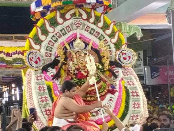 இந்தநிலையில் இந்தாண்டுக்கான தசரா திருவிழா கடந்த 06 ஆம் தேதி கொடியேற்றத்துடன் தொடங்கியது. கொரோனா கட்டுப்பாடுகள் காரணமாக தொடர்ந்து 2ஆவது ஆண்டாக தசரா திருவிழா கடும் கட்டுப்பாடுகளுடன் நடைபெற்றது. திருவிழா கொடியேற்றம், மஹிஷா சூரசம்ஹாரம், உள்ளிட்ட நிகழ்ச்சிகளுக்கு பக்தர்கள் கலந்து அனுமதி வழங்கப்படவில்லை. கொரோனா கட்டுப்பாடுகள் காரணமாக ஐந்து நாட்கள் மட்டுமே பக்தர்கள் தரிசனத்திற்கு அனுமதிக்கப்பட்டனர். மேலும் பக்தர்கள் வேடமணிந்து கோவிலுக்கு வர அனுமதி வழங்கப்படவில்லை. வேடமணியும் பக்தர்கள் உள்ளூரிலேயே காணிக்கை பெற்று வேண்டுதல்களை நிறைவேற்றிக்கொள்ள அறிவுறுத்தப்பட்டார்கள்.