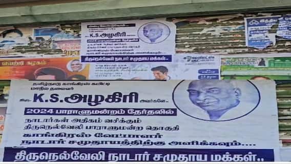 2024 பாராளுமன்ற தேர்தல் விரைவில் வர இருக்கிறது. அதற்கான அறிவிப்புகளும் இன்னும் ஓரிரு வாரங்களில் அறிவிக்கப்படலாம் என கூறப்படுகிறது. இந்த நிலையில் அனைத்து கட்சிகளும் தேர்தலை சந்திக்க தயாராகி வருகின்றனர். குறிப்பாக தேர்தல் வருவதற்கு முன்னே நெல்லையில் தேர்தல் களம் சூடுபிடிக்க தொடங்கியுள்ளது. அதன் ஒரு பகுதியாக நேற்று நெல்லை மாநகர பகுதிகளில் பல்வேறு இடங்களில் திருநெல்வேலி நாடார் சமுதாய மக்கள் என்ற பெயரில் நாடார்கள் அதிகம் வசிக்கும் திருநெல்வேலி பாராளுமன்ற தொகுதியில் காங்கிரஸ் வேட்பாளர் நாடார் சமுதாயத்திற்கே அளிக்க வேண்டும் என கோரிக்கை வைத்து மாநகர முழுவதும் இன்று போஸ்டர்கள் ஒட்டப்பட்டுள்ளது. அந்த போஸ்டரில் தமிழ்நாடு காங்கிரஸ் கமிட்டி மாநில தலைவர் கே.எஸ்.அழகிரி அவர்களுக்கு அன்பு வேண்டுகோள், 2024 பாராளுமன்ற தேர்தலில் நாடார்கள் அதிகம் வசிக்கும் திருநெல்வேலி பாராளுமன்ற தொகுதி காங்கிரஸ் வேட்பாளர் நாடார் சமுதாயத்திற்கே அளிக்கவும் என நாடார் சமுதாய மக்கள் சார்பாக பொதுவாக பெயர் எதுவும் இன்றி ஒட்டப்பட்டுள்ளது. இதனால் நெல்லையில் பரபரப்பு ஏற்பட்டுள்ளது.