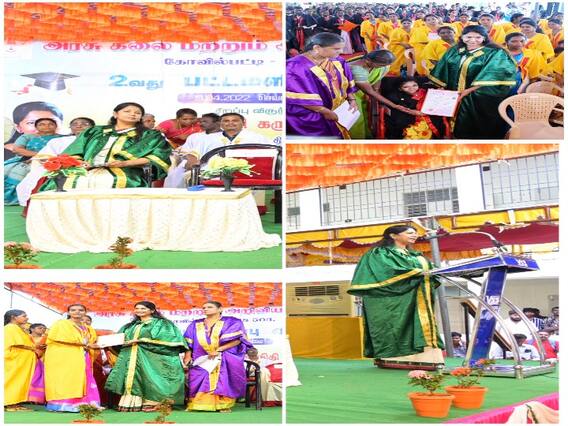 தூத்துக்குடி மாவட்டம் கோவில்பட்டி அரசு கலை மற்றும் அறிவியல் கல்லூரியில் 2வது பட்டமளிப்பு விழா நடைபெற்றது. இதில் கனிமொழி எம்.பி கலந்து கொண்டு இளநிலை மாணவ-மாணவியர்கள் 412 பேருக்கும், முதுநிலை மாணவ-மாணவியர்களுக்கும் 110 பேருக்கும் பட்டம் வழங்கினார். அப்போது மாற்றுத்திறனாளி மாணவிக்கு மேடையில் இறந்து கீழே இறங்கி கனிமொழி எம்.பி. பட்டம் வழங்கினார்.