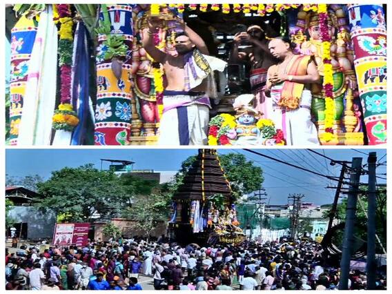 இதற்காக நேற்று மாலை மகா சங்கல்பம் விஷ்வக்ஷேன ஆராதனை, கும்ப ஸ்தாபனம் கலச திருவாராதனம் மகா பூர்ணாஹுதி நடைபெற்றது. இன்று அதிகாலையில் திருக்கோவில் நடை திறக்கப்பட்டு விஸ்வரூப பூஜை முடிந்ததும் ஹோமங்கள் தொடா்ந்து மகா பூர்ணாஹூதி நடைபெற்றது. திருவோண நட்சத்திரமும், அமிர்தயோகமும் கூடிய மேஷ லக்னத்தில் காலை 9.47 மணிக்கு திருத்தேர் வடம் பிடித்து வெள்ளோட்டம் தொடங்கியது. முன்னதாக யாகசாலையில் இருந்து கடம் புறப்பாடு நடைபெற்று தேர் ஆவாஹனம் மற்றும் திருவாராதனம் நடைபெற்றது. ஆன்மீகப் பெருமக்கள் திரளாக கலந்து கொண்டு ராஜகோபாலன் திருத்தேர் வடம் பிடித்து இழுத்தனர்.