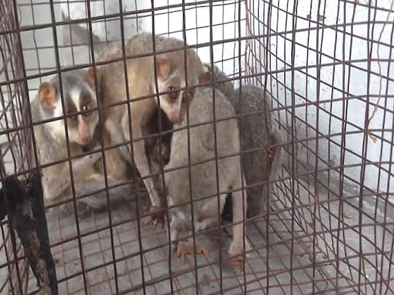 இந்நிலையில் தூத்துக்குடி மாவட்டம் விளாத்திகுளம் அருகே உள்ள சங்கரலிங்கபுரம் காவல் எல்லைக்குட்பட்ட பகுதியான குருவார்பட்டியில் நேற்றிரவு போலீசார் வாகன சோதனையில் ஈடுபட்டிருந்தனர்.அப்போது மதுரையிலிருந்து விளாத்திகுளம் நோக்கி ஒரு சுமோ வந்து கொண்டிருந்தது, அந்த வாகனத்தை சோதனை செய்த போது ஒரு கூண்டில் அழியும் விளிம்பில் உள்ள அரியவகை பாலூட்டி வகையை சேர்ந்த உயிரினமான 5 தேவாங்குகள் இருந்தது தெரியவந்தது. இதனை தொடர்ந்து தேவாங்கு வனவிலங்கை கடத்திய விளாத்திகுளம் அருகே உள்ள மேல்மாந்தை கிராமத்தை சேர்ந்த பாலு என்பவரின் மகன் கனகராஜ் (22) மற்றும் வேம்பார் கிராமத்தை சேர்ந்த பெருமாள் என்பவரின் மகன் கொம்புத்துரை (40) ஆகியோரை கைது செய்த சங்கரலிங்கபுரம் காவல் நிலைய போலீசார் கடத்தலுக்கு பயன்படுத்திய சுமோ வாகனத்தையும், 5 தேவாங்குகள் விளாத்திகுளம் வனச்சரக அலுவலகத்தில் ஒப்படைத்தனர், விசாரணையில் விளாத்திகுளம் அருகே உள்ள ஒரு மந்திரவாதிக்கு மாந்திரீகம் செய்வதற்காக திண்டுக்கல் மாவட்டத்தில் இருந்து கடத்தி வரப்பட்டது தெரியவந்தது.
