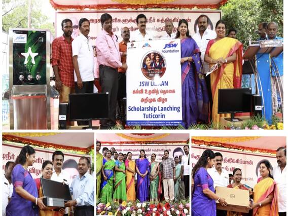 தூத்துக்குடி சி.வ.அரசு மேல்நிலைப்பள்ளி வளாகத்தில் அரசு பள்ளிக்கூடங்களுக்கு குடிநீர் சுத்திகரிப்பான் மற்றும் கம்ப்யூட்டர் வழங்கும் விழா நடந்தது. விழாவுக்கு மாவட்ட முதன்மை கல்வி அலுவலர் பாலதண்டாயுதபாணி தலைமை தாங்கி வரவேற்று பேசினார். மாநகராட்சி மேயர் ஜெகன் பெரியசாமி, ஜே.எஸ்.டபிள்யூ எனர்ஜி லிமிடெட் நிறுவன உதவி துணைத்தலைவர் தென்னவன் ஆகியோர் முன்னிலை வகித்தனர்.அமைச்சர் கீதாஜீவன் கலந்து கொண்டு சிறப்புரையாற்றினார். சிறப்பு அழைப்பாளராக கனிமொழி எம்.பி. கலந்து கொண்டு 14 அரசு பள்ளிக்கூடங்களுக்கு குடிநீர் சுத்திகரிப்பான், கம்ப்யூட்டர்களை வழங்கி பேசினார்.