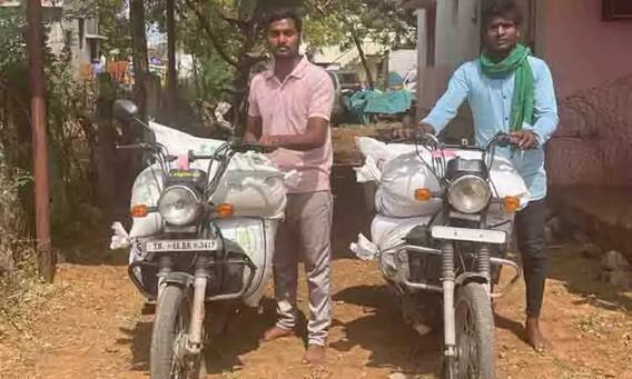 அத்தியாவசிய பண்டங்கள் கடத்தல் மற்றும் பதுக்கல் ஆகிய குற்றங்களை தடுக்கும் வகையில் தமிழ்நாடு குடிமை பொருள் வழங்கல் குற்றப்புலனாய்வு துறை கூடுதல் டி.ஜி.பி. அருண் உத்தரவின்பேரில், திருச்சி மண்டல போலீஸ் சூப்பிரண்டு சுஜாதா மேற்பார்வையில், திருச்சி சரக துணை போலீஸ் சூப்பிரண்டு சுதர்சன் தலைமையில் தீவிரமான கண்காணிப்பு பணிகளை குடிமை பொருள் வழங்கல் குற்றப்புலனாய்வு போலீசார் பல இடங்களில் மேற்கொண்டு வருகின்றனர். குறிப்பாக திருச்சி மாவட்டத்தில் கடந்த சில மாதங்களாக ரேஷன் அரிசிகளை பதுக்கி வைத்து, அதை மற்ற மாநிலங்களுக்கு கடத்தல் சம்பவங்கள் தொடர்ந்து நடைபெற்று வருகிறது. இவற்றை முற்றிலும் தடுக்க மாவட்ட நிர்வாகம் தரப்பில் பல்வேறு நடவடிக்ககளை முன்னெடுத்து வருகிறது. இந்தநிலையில், திருச்சி-கரூர் சாலை பகுதியில் முருங்கைப்பேட்டையில் இருசக்கர வாகனங்களில் 2 பேர் ரேஷன் அரிசி கடத்தி செல்வதாக போலீசாருக்கு நேற்று காலை ரகசிய தகவல் கிடைத்தது. அதன்பேரில் திருச்சி குடிமை பொருள் வழங்கல் குற்றப்புலனாய்வு துறை இன்ஸ்பெக்டர் கோபிநாத் தலைமையில் சப்-இன்ஸ்பெக்டர் கண்ணதாசன் மற்றும் போலீசார் அங்கு சென்று கண்காணித்தனர்.