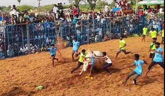இதைத்தொடர்ந்து காலை 8.30 மணியளவில் மாடுபிடி வீரர்கள் ஜல்லிக்கட்டு நடைபெறும் திடலில் உறுதிமொழி ஏற்றுக்கொண்டனர். இதையடுத்து காலை 8.45 மணியளவில் புதுக்கோட்டை மாவட்ட வருவாய் அலுவலர் சாந்தி, முன்னாள் மக்கள் நல்வாழ்வுத் துறை அமைச்சர் டாக்டர் சி.விஜயபாஸ்கர் எம்.எல்.ஏ., ஒன்றிய கவுன்சிலர் சத்தியசீலன் ஆகியோர் கொடியசைத்து ஜல்லிக்கட்டை தொடங்கி வைத்தனர். பின்னர் வாடிவாசலில் இருந்து கோவில் காளைகள் அவிழ்த்து விடப்பட்டன. அதை மாடுபிடி வீரர்கள் யாரும் பிடிக்கவில்லை. பின்னர் வாடிவாசலில் தயார் நிலையில் நின்றிருந்த ஜல்லிக்கட்டு காளைகள் ஒன்றன்பின் ஒன்றாக அவிழ்த்து விடப்பட்டன. அப்போது சீறிப்பாய்ந்து வந்த காளைகளை மாடுபிடி வீரர்கள் போட்டி போட்டு அடக்கினர். இதில், பல காளைகள் வீரர்களிடம் பிடிபடாமல் அவர்களை தூக்கி வீசியும், காலால் மிதித்தும் சீறிப்பாய்ந்து சென்றன.