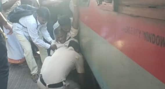 இதை பார்த்த ரயில்வே பாதுகாப்பு படை போலீசார் மற்றும் பயணிகள் அவரை உடனடியாக மீட்டனர். பின்னர் மருத்துவ சிகிச்சைக்காக ஜெயச்சந்திரனை மருத்துவமனைக்கு அனுப்பி வைத்தனர்.