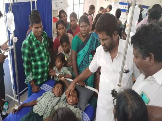 அரியலூர் மாவட்டம் மீன்சுருட்டி அருகே உள்ள கங்கைகொண்ட சோழபுரம் கிராமத்தில் ஆதிதிராவிட நல தொடக்கப்பள்ளி இயங்கி வருகிறது. இங்கு 50-க்கும் மேற்பட்ட மாணவர்கள் படித்து வருகின்றனர். இந்த பள்ளியின் தலைமை ஆசிரியையாக புஷ்பவல்லி உள்ளார். மேலும், சத்துணவு அமைப்பாளராக இளமதியும், சமையலராக சரஸ்வதியும், சமையல் உதவியாளராக சபிதாவும் பணியாற்றி வருகிறார்கள். நேற்று முன்தினம் வழக்கம்போல் மாணவர்களுக்கு மதிய உணவாக புளி சாதம் மற்றும் முட்டை வழங்கப்பட்டது. இதனை சாப்பிட்ட மாணவ, மாணவிகள் சிறிது நேரத்திலேயே வாந்தி மயக்கம் ஏற்பட்டது. இதுகுறித்து தகவல் அறிந்த மாணவர்களின் பெற்றோர் மற்றும் பொதுமக்கள் பள்ளி முன்பு திரண்டனர். பின்னர் அவினாஷ், லீரோஷன், மித்ரன் உள்பட 25 மாணவ-மாணவிகளை 108 ஆம்புலன்ஸ் மூலம் ஜெயங்கொண்டம் அரசு மருத்துவமனையில் சிகிச்சைக்காக அனுமதிக்கப்பட்டனர். இது குறித்து தகவல் அறிந்த மீன்சுருட்டி போலீஸ் இன்ஸ்பெக்டர் பாஸ்கர் சம்பவ இடத்துக்கு விரைந்து சென்றார். பின்னர் அவர் தனது வாகனத்தில் 10 மாணவ,மாணவிகளை ஏற்றி சென்று ஜெயங்கொண்டம் அரசு மருத்துவமனையில் சேர்த்தார். அங்கு அவர்களுக்கு டாக்டர்கள் சிகிச்சை அளித்தனர்.