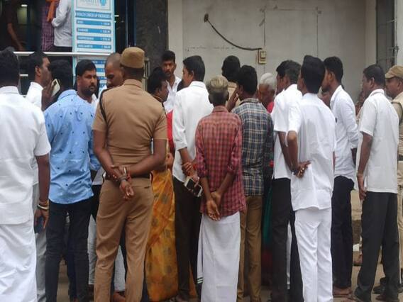 தஞ்சை மாவட்டம் சோழபுரம் அருகே உள்ள அணைக்குடி கிராமத்தை சேர்ந்தவர் புருஷோத்தமன். இவர் கடந்த 24-ந் தேதி அரியலூர் மாவட்டம் காசாங்கோட்டை கிராமத்தில் உள்ள தனது அக்காள் மகள் மஞ்சள் நீராட்டு விழாவிற்கு உறவினர்களை அழைத்துக் கொண்டு மேள தாளங்களுடன் சீர்வரிசை எடுத்துச் சென்றுள்ளார். அப்போது அதே கிராமத்தை சேர்ந்த வல்லவன் (வயது 41), ரவி (43) சுமதி, (43) அருண்குமார் (30), ராஜதுரை (31) ஆகியோர் புருஷோத்தமனிடம் வாக்குவாதத்தில் ஈடுபட்டதாக கூறப்படுகிறது. இந்த சம்பவம் குறித்து புருஷோத்தமன் விக்கிரமங்கலம் போலீஸ் நிலையத்தில் தன்னை சாதியை குறிப்பிட்டு இழிவாக பேசியதாக புகார் அளித்துள்ளார். இதன்பேரில் சப்-இன்ஸ்பெக்டர் லோகநாதன் வன்கொடுமை சட்டத்தின் கீழ் வல்லவன், ரவி, சுமதி, அருண்குமார், ராஜதுரை ஆகிய 5 பேர் மீது வழக்குப்பதிவு செய்து விசாரணை நடத்தி வந்தார். கடந்த 25-ந் தேதி அருண்குமாரை கைது செய்ய விக்கிரமங்கலம் போலீசார் அவரது வீட்டிற்கு சென்றுள்ளனர். அப்போது அருண்குமார் வீட்டில் இல்லாததால் அதே கிராமத்தில் உள்ள அருண்குமாரின் மாமனாரும், விவசாயியுமான செம்புலிங்கம் (52) வீட்டிற்கு சென்று விசாரித்துள்ளனர். அப்போது ஏற்பட்ட வாக்குவாதத்தில் போலீசார் செம்புலிங்கம், அவரது மனைவி சுதா, மகன் மணிகண்டன் ஆகியோரை தாக்கியதாக கூறப்படுகிறது. இதில் காயமடைந்த செம்புலிங்கம் உடனடியாக 108 ஆம்புலன்ஸ் மூலம் அரியலூர் அரசு மருத்துவமனையில் சிகிச்சைக்காக சேர்க்கப்பட்டுள்ளார்.