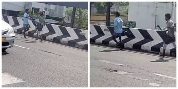 இந்நிலையில் அவ்வழியே இருசக்கர வாகனத்தில் வந்த வாகன ஓட்டிகள், சந்துருவை அரிவாளுடன் மடக்கி பிடித்தனர். அப்போது படுகாயமடைந்த சிவக்குமாரை, ஸ்ரீரங்கம் அரசு மருத்துமனையில் சேர்த்தனர். இச்சம்பவம் குறித்து ஸ்ரீரங்கம் காவல்துறையினர் வழக்குப்பதிவு செய்து விசாரணை நடத்தி வருகின்றனர். பரபரப்பாக காணப்படும் மேம்பாலத்தில் நடந்த இச்சம்பவம் வாகன ஓட்டிகளை பதை பதைக்க வைத்ததுள்ளது.
