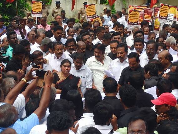 இந்த ஆர்ப்பாட்டத்தில் அதிமுக முன்னால் அமைச்சர்கள் பரஞ்சோதி, வளர்மதி, முன்னால் நாடாளுமன்ற உறுப்பினர் ப.குமார், திருச்சி மாநகர மாவட்ட செயலாளர் சீனிவாசன், மற்றும் அதிமுக மாவட்ட, வட்ட, பகுதி, நிர்வாகிகள், தொண்டர்கள் கலந்துக்கொண்டனர்.