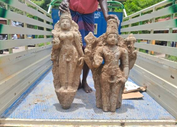 இதனை தொடர்ந்து விரைந்து சம்பவ இடத்திற்கு சென்ற வருவாய்த்துறையினர் 3 அடியிலான 2 சிலைகளையும் கைப்பற்றினர். அப்போது அது விஷ்ணு மற்றும் அம்பாள் சிலை என தெரியவந்தது.