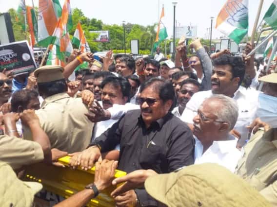 மேலும் ஒரு கட்டத்தில் போராட்டம் நடத்த வருபவர்கள் எல்லை தாண்டி வரக்கூடாது என்பதற்காக போடப்பட்டிருந்த ரோப்கயிரோடு நாடாளுமன்ற உறுப்பினர் திருநாவுக்கரசரை தள்ளி அழுத்தினார். இதில் சுதாரித்துக் கொண்ட அவர் பின்னால் நின்ற உறுப்பினர்களை வேமமாக தள்ளி விட்டார். பின்னர் இந்தப் போராட்டத்தில் கலந்து கொள்ள வருகை தந்திருந்த காங்கிரஸ் உறுப்பினர்கள் மற்றும் தொண்டர்களை காவல்துறையினர் கைது செய்தனர். ராகுல் காந்தியின் பாராளுமன்ற உறுப்பினர் பதவி பறிக்கப்பட்டதுடன் ,அவருக்கான அலுவலகத்தை பறித்து அவரை, பாரதிய ஜனதா கட்சி நடுரோட்டில் நிறுத்த முயற்சி செய்துள்ளது. ஆனால் சட்ட ரீதியாக நீதிமன்றம் வாயிலாகவும், மக்கள் மன்றம் வாயிலாக நாங்கள் இதனை வெல்வோம் என்றார். சர்வாதிகாரப் போக்கினை கையில் எடுத்துக்கொண்டு பாஜக தொடர்ந்து ராகுல் காந்திக்கு அழுத்தத்தை கொடுத்து வருகிறது. இதற்கெல்லாம் ராகுல் காந்தியோ, காங்கிரஸ் கட்சியை சேர்ந்தவர்கள் ஒருபோதும் பயப்பட போவதில்லை என முழக்கம்யிட்டனர்.