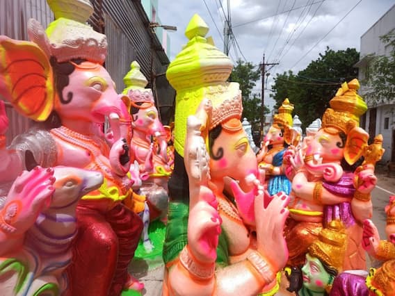 தமிழ்நாட்டில் இந்துக்கள் கொண்டாடும் பண்டிகைகளில் விநாயகர் சதுர்த்தி விழா முக்கியமானது ஆகும். கடந்த 25 ஆண்டுகளுக்கு முன்பு வரை சென்னை, மதுரை, கோவை, திருச்சி உள்ளிட்ட பெரு நகரங்களில் மட்டுமே விமரிசையாக கொண்டாடப்பட்டு வந்த விநாயகர் சதுர்த்தி விழா கடந்த சில ஆண்டுகளாக சிறிய கிராமங்களிலும் கொண்டாடப்படுகிறது. விநாயகர் சதுர்த்தி விழாவில் ஊரின் முக்கிய பகுதிகளில் விநாயகர் சிலைகளை பிரதிஷ்டை செய்து பூஜை செய்வர். பின்னர் குறிப்பிட்ட நாளில் அந்த சிலைகளை ஊர்வலமாக எடுத்து சென்று நீர் நிலைகளில் கரைப்பது வழக்கம். இந்த ஆண்டிற்கான விநாயகர் சதுர்த்தி விழா வருகின்ற 18-ந் தேதி கொண்டாடப்படுகிறது. இதையொட்டி விநாயகர் சதுர்த்தி விழாவிற்கான முன்னேற்பாடு பணிகளில் விழா குழுவினர் மற்றும் இந்து அமைப்பினர் தீவிரமாக ஈடுபட்டு உள்ளனர். இந்நிலையில் மண் சிற்பங்களுக்கு பிரசித்தி பெற்ற திருச்சி மாவட்டம், கொண்டையம் பேட்டை பகுதியில் சதுர்த்தி விழாவிற்கான விநாயகர் சிலைகளை தயாரிக்கும் பணியில் தொழிலாளர்கள் ஈடுபட்டுள்ளனர்.
