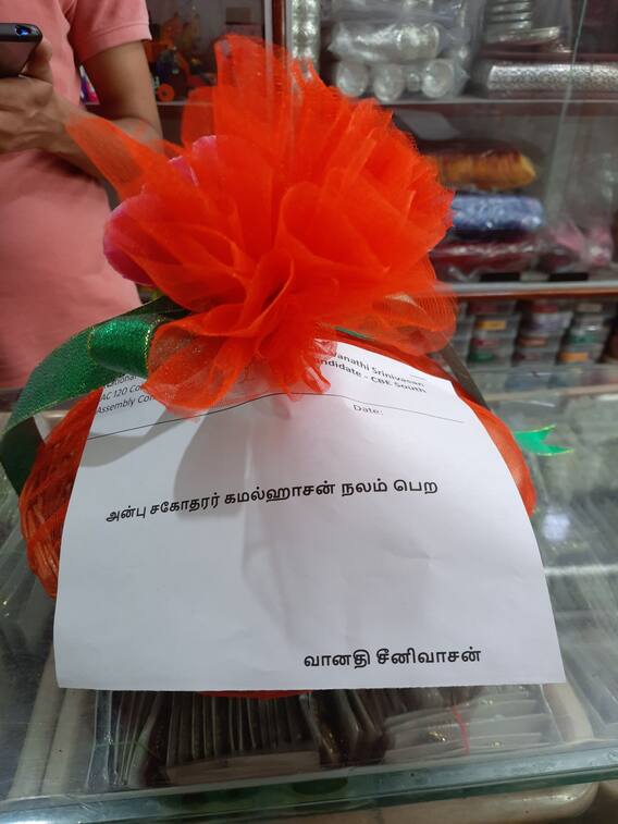 சட்டமன்றத் தேர்தலையொட்டி கோவை தெற்கு பகுதி தேர்தல் பிரசாரம் மிகவும் சூடுபிடித்து வருகிறது. திராவிட முன்னேற்றக்கழகக் கூட்டணிகள் சார்பில் காங்கிரஸின் மயூரா ஜெயக்குமார், மக்கள் நீதி மய்யத்தின் சார்பில் கமல்ஹாசன், பாரதிய ஜனதா கட்சியின் வானதி சீனிவாசன் மற்றும் அமமுகவின் ஆர்.துரைசாமி என நான்குமுனைப் போட்டியாகியிருக்கிறது அந்தத் தொகுதி. இந்த நிலையில் அந்தத் தொகுதியில் தேர்தல் பிரசாரம் மேற்கொண்டு வரும் கமல்ஹாசனுக்கு நேற்று பாரதிய ஜனதா கட்சியின் வானதி சீனிவாசன் பழக்கூடை அனுப்பியது பரபரப்பை ஏற்படுத்தியது. இதுகுறித்து ட்வீட் செய்திருந்த வானதி,