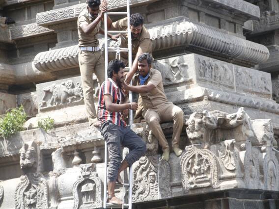 பஞ்சபூத ஸ்தலங்களில் அக்னி ஸ்தலமாக விளங்க கூடிய திருவண்ணாமலை அருணாசலேஸ்வரர் கோவிலுக்கு திறந்தோறும் ஆயிரக்கணக்கான பக்தர்கள் வந்து சாமி தரிசனம் செய்து விட்டு செல்கின்றனர். ராஜகோபுரம் முன் ஏராளமான பக்தர்கள் நின்று சாமி தரிசனம் செய்துகொண்டு இருந்தனர். அப்போது திடீரென வாலிபர் ஒருவர் ராஜகோபுரத்தின் மீது வெளிப்புறம் வழியாக கோபுரத்தின் மேல் ஏறி கொண்டு இருந்தார் அங்கு இருந்த பொதுமக்கள் அவர் கோவிலின் கோபுரத்தை சுத்தம் செய்ய ஏறியதாக நினைத்து அமைதியாக வாலிபர் ஏறுவதை கண்டு உள்ளனர். கோபுரத்தின் 20 அடி உயரத்தில் சென்று அமர்ந்து கொண்ட இளைஞர் தான் புதியதாக வாங்கிய செல்போனை ஒருவர் திருடி சென்றுவிட்டதாகவும், அவரிடம் இருந்து செல்போனை வாங்கி தராவிட்டால் ராஜகோபுரம் மேலிருந்து குதித்து தற்கொலை செய்து கொள்வேன் என்று தற்கொலை மிரட்டல் விடுத்தார்.
