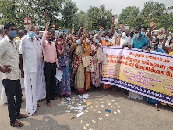 அப்பொழுது சில குறைந்த அளவு மக்கள் மட்டுமே அனுமதிக்கப்படுவர் என காவல்துறை சார்பில் தெரிவித்த போதும் தங்களுக்கு நியாயம் வேண்டும் என கூறி காவல் துறையினரிடம் வாக்குவாதத்தில் ஈடுபட்டனர், பின்னர் திடீரென தங்களை அகதிகளாக அறிவிக்க கோரி தாங்கள் வைத்து இருந்த ரேஷன் கார்டு, ஆதார் கார்டு மற்றும் வாக்காளர் அடையாள அட்டையை மாவட்ட ஆட்சியர் அலுவலகம் முன்பு உள்ள சாலையில் வீசி போராட்டத்தில் ஈடுபட்டனர், போராட்டத்தில் தமிழக அரசை கண்டித்தும், மாவட்ட நிர்வாகத்தை கண்டித்தும் முழக்கங்கள் எழுப்பப்பட்டன. பின்னர் செய்தியாளர்களை சந்தித்த அவர்கள் கூறும் பொழுது, கடலூர் மாவட்டம் கோட்டகம் ஊராட்சியில் உள்ள ஏரி பகுதியில் ஆக்கிரமிப்பு அகற்ற வேண்டிய அவசியம் தற்போது ஏற்படவில்லை. மேலும் இந்த ஏரியின் ஒதுக்கு புறமாக சுமார் 70 ஆண்டுகளாக வீடுகள் கட்டி 27 குடும்பங்கள் வசித்து வருகின்றோம்.