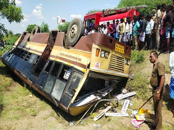 விழுப்புரம் மாவட்டம், திண்டிவனம் அடுத்த ஆலகிராமத்தில் அரசு பேருந்து சாலையோர பள்ளத்தில் கவிழ்ந்து விபத்துக்குள்ளானதில் ஓட்டுநர் நடத்துனர் உள்ளிட்ட 50க்கும் மேற்பட்டோர் இடிபாடுகளுக்கு இடையே சிக்கி படுகாயம் அடைந்தனர். விழுப்புரம் மாவட்டம் திண்டிவனத்தில் இருந்து திண்டிவனத்தில் இருந்து தடம் எண் 24 அரசு பேருந்து நெடி கிராமத்திற்கு இன்று காலை சென்று விட்டு திண்டிவனம் திரும்பும் வழியில் ஆலகிராமம் என்னும் இடத்தில் எதிரே வரும் வாகனத்திற்காக ஓட்டுநர் அய்யனார் பேருந்தை வலது புறமாக திருப்பிதாக கூறப்படுகிறது.