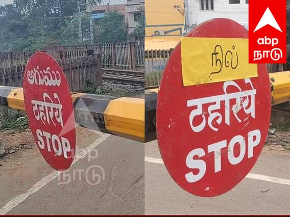 விழுப்புரம்: விழுப்புரம் நகர பகுதியான வண்டிமேடு ரயில்வே கேட் கம்பத்தில் நில், STOP என்று எழுதி இருந்ததில் "நில் "என்ற தமிழ் வார்த்தை அழிக்கப்பட்டு இந்தி, ஆங்கிலம், தெலுங்கில் நில் என்று குறிப்பிடப்பட்டிருந்த சம்பவம் அதிர்ச்சியை ஏற்படுத்தியுள்ளது.