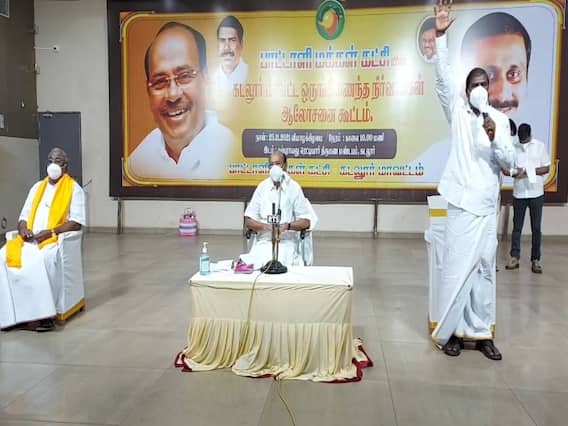 கடலூர் மாவட்ட ஒருங்கிணைந்த நிர்வாகிகள் ஆலோசனை கூட்டம் கடலூரில் உள்ள தனியார் திருமண நிலையத்தில் நடைபெற்றது. இக்கூட்டத்தில் பாட்டாளி மக்கள் கட்சியின் நிறுவனர் ராமதாஸ், தலைவர் ஜி.கே.மணி உள்ளிட்ட மாவட்ட நிர்வாகிகள் கலந்துகொண்டனர். ஆலோசனை கூட்டத்தில் கலந்துகொண்ட நிர்வாகிகளிடையே பேசிய நிறுவனர் ராமதாஸ், கடலூரில் நடைபெற்ற உள்ளாட்சி தேர்தலில் அனைத்து இடங்களிலும் போட்டியிடாமல் இருந்தது மிகவும் வேதனை அளித்ததாகவும் மேலும் போட்டியிட ஆட்கள் இல்லை சொல்லி இருந்தால் அந்தமானில் இருந்து கப்பலில் 50 பேரை அழைத்து வந்து இருப்பேன் என பேசிய அவர் கடலூரில் முந்திரி தொழிலாளி கோவிந்தராஜ் கொலை வழக்கை தோண்டி எடுத்து தொடர்ந்து போராடி வருவதாகவும் மேலும் கொலை வழக்கில் தவறு செய்தவர்களுக்கு நிச்சயமாக தண்டனை கிடைக்கும் என்றும் காவல்துறை சரியான நடவடிக்கை எடுக்கும் என்ற நம்பிக்கை உள்ளதாகவும் தெரிவித்தார்.