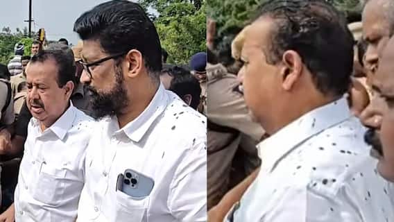 இது அவர்களது வெள்ளை உடையில் பட்டதால், அவசர அவசரமாக அங்கிருந்து அமைச்சர் பொன்முடி உள்ளிட்டோர் கிளம்பிச் சென்றனர்