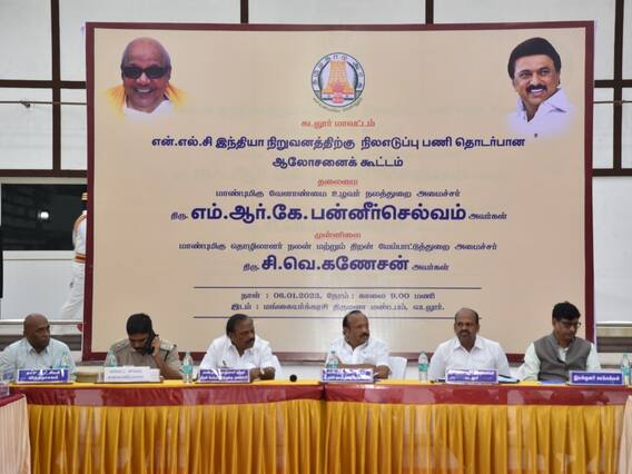 கடலூர் மாவட்டம் வடலூரில் உள்ள தனியார் திருமண மண்டபத்தில் என்.எல்.சி .இந்தியா நிறுவனத்திற்கு நில எடுப்பு பணி தொடர்பாக அனைத்து கட்சி மற்றும் என்எல்சி நிர்வாகம்,மாவட்ட நிர்வாகம் என முத்தரப்பு கூட்டம் வேளாண் துறை அமைச்சர் எம் ஆர் கே பன்னீர்செல்வம் தலைமையில் நடைபெற்றது. தமிழக வேளாண் துறை அமைச்சர் எம் ஆர் கே பன்னீர்செல்வம் தலைமை தாங்கினார்.