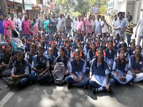 இதையடுத்து, மாணவிகள் கல்வித்துறை நோக்கி பெற்றோர்களுடன் செல்ல முயற்சித்தனர். அவர்கள் ஊர்வலமாக வந்து கம்பன் கலையரங்கில் திடீர் மறியலில் ஈடுபட்டனர். மாணவிகள் போராட்டம் குறித்து தெரிந்த பல்வேறு சமூக அமைப்பை சேர்ந்தவர்கள் அங்கு திரண்டனர். மாணவிகளை ஊர்வலமாக வெங்கடசுப்பாரெட்டியார் சதுக்கத்துக்கு சமூக அமைப்பினர் அழைத்து வந்தனர். இதனிடையே நேரு எம்.எல்.ஏ. திரு.வி.க. பள்ளிக்கு சென்று மாணவர்களை சமாதானப்படுத்தினார். பின்னர் போராட்டம் நடத்திய இடத்துக்கு வந்த நேரு எம்.எல்.ஏ. மாணவிகளை சமாதானப்படுத்த முயன்றார். ஆனால் மாணவிகள் போராட்டத்தை கைவிட மறுத்தனர். இதனால் நேரு எம்.எல்.ஏ. அங்கிருந்து விலகிச்சென்றார்.