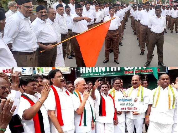 தமிழகத்தில் ஆர்.எஸ்.எஸ் ஊர்வலத்திற்கு அனுமதி மறுக்கப்பட்ட நிலையில், புதுச்சேரியில் பலத்த போலீஸ் பாதுகாப்புடன் 1000க்கும் பங்கேற்றனர். ஜோதி வள்ளலாரின் 200வது பிறந்த ஆண்டு, மகாத்மா காந்தியின் 153வது பிறந்த தினம் மற்றும் நாடு சுதந்திரம் அடைந்து 75வது ஆண்டு நிறைவடைந்ததை கொண்டாடும் வகையில் புதுச்சேரியில் ஆர்.எஸ்.எஸ் அணிவகுப்பு ஊர்வலம் நடைபெறுகிறது. புதுச்சேரி சித்தன்குடி பகுதியில் உள்ள புதுச்சேரி காமராஜர் சாலையிலிருந்து தொடங்கும் பேரணியை ராஜ்யசபா உறுப்பினர் செல்வகணபதி தொடங்கி வைத்தார்.