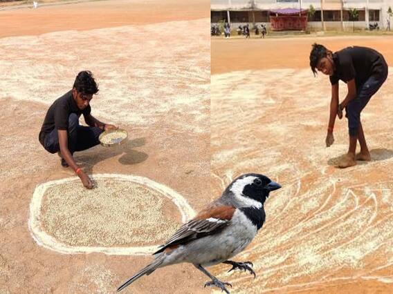 இதனை நேற்று காலை தொடங்கி மாலையில் செய்து முடித்தார். முதலில் சிட்டுக் குருவியின் உருவப்படத்தை வரைந்து, பின்னர் அவற்றில் அரிசி, கோதுமை, உளுந்து, பச்சைப்பயறு ஆகிய தானியங்களைத் தூவி இந்த படத்தை உருவாக்கியுள்ளார். மாணவரின் இந்த முயற்சியை கலாம் உலக சாதனை நிறுவனம் அங்கீகரித்து, உலக சாதனை சான்றிதழ் வழங்கயிருக்கிறது. மாணவரின் இந்த சாதனை முயற்சிக்கான ஏற்பாடுகளை விழிகள் கல்வி மற்றும் பசுமை அறக்கட்டளை தலைவர் பிரேம்குமார் மற்றும் தன்னார்வலர்கள் செய்திருந்தனர்.