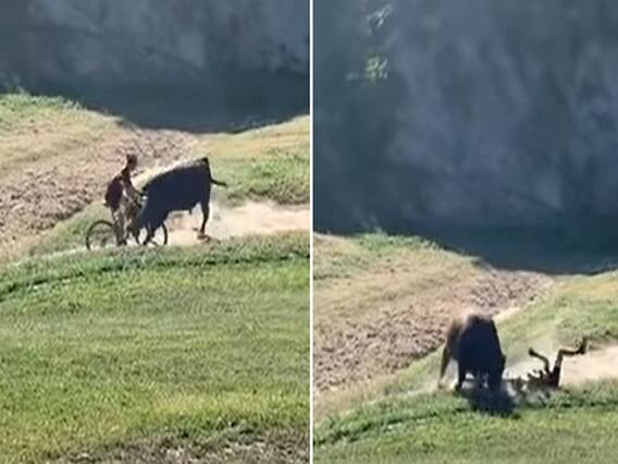 கலிபோர்னியாவில் சைக்கிள் ஓட்டி வந்த நபரை காளை ஒன்று முட்டித்தூக்கிய வீடியோ தற்போது சமூக வலைதளங்களில் வைரலாகி வருகிறது.