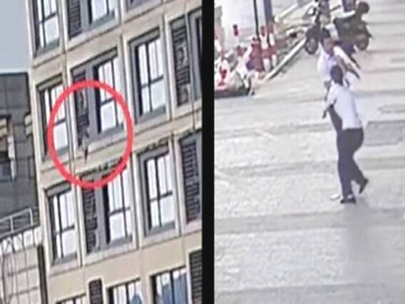 ஷென் டோங் என்ற நபர் தனது காரை அங்குள்ள தெரு ஒன்றில் நிறுத்திக் கொண்டிருந்தார். அப்போது அருகிலுள்ள அடுக்குமாடி குடியிருப்பு ஒன்றில் இருந்து அலறல் சத்தம் கேட்டுள்ளது. அது என்னவென்று ஷென் டாங் பார்க்க முயன்றுள்ளார். அப்போது இரண்டு வயது குழந்தை ஒன்று அந்த அடுக்குமாடி குடியிருப்பின் 5வது மாடியின் ஜன்னலில் இருந்து இருந்து விழுவதைக் கண்டார். இதனைக் கண்ட அந்த நபர் உடனடியாக சுதாரித்து அற்புதமாக கேட்ச் பிடித்தார். இந்த வீடியோவை சீன அரசு அதிகாரி லிஜியன் ஜாவோ தனது ட்விட்டர் பக்கத்தில் பகிர்ந்துள்ளார்.