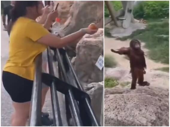 "இப்போது அதை எனக்குக் கொடுங்கள்..." என்ற தலைப்போடு ஆன்லைனில் பகிரப்பட்ட அந்த வீடியோ ஒரு பெண் தனது கைகளில் ஒரு பழத்தை வைத்திருப்பது போன்ற காட்சியோடு துவங்குகிறது. வீடியோவில் மேலும், ஒரு உயிரியல் பூங்காவிற்குள் ஒரு ஒராங்குட்டான் கையை நீட்டி நிற்பதைக் காண முடிகிறது. மேலும் அந்த குரங்கின் வேடிக்கையான செயலை காண்பிக்க ஜூம் செய்து காண்பிக்கிறார்கள்.