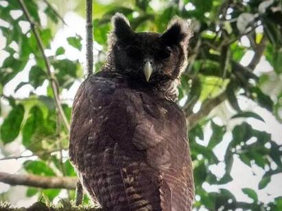 16 அக்டோபர் 2021 அன்று டாக்டர் டோபியாஸ் மற்றும் டாக்டர் வில்லியம்ஸ் ஆகியோர் கானாவில் உள்ள அடேவா காட்டிற்குச் சென்று ஒரு பெரிய பறவையை அதன் பகல்நேர கூட்டத்திலிருந்து கலைத்தபோதுதான் இது நிகழ்ந்தது. "அது அளவில் மிகவும் பெரியது, முதலில் கழுகு என்று நினைத்தோம்" என்று டாக்டர் டோபியாஸ் கூறினார். "அதிர்ஷ்டவசமாக அது ஒரு தாழ்வான கிளையில் அமர்ந்தது, நாங்கள் எங்கள் தொலைநோக்கியை தூக்கி பார்த்தபோது அதிசயித்துப்போனோம், ஆப்பிரிக்காவின் மழைக்காடுகளில் இவ்வளவு பெரிய ஆந்தை வேறேதும் இல்லை." என்றார். பறவை 10-15 வினாடிகள் மட்டுமே அமர்ந்திருப்பதை அவர்கள் கண்டார்கள், ஆனால் அந்த நேரத்திற்குள் அதன் தனித்துவமான கருப்பு கண்கள், மஞ்சள் விழி மற்றும் அதன் அளவு ஆகியவற்றின் அடையாளத்தை உறுதிப்படுத்தும் புகைப்படங்களை எடுக்க முடிந்தது, இது மற்ற அனைத்து ஆப்பிரிக்க வன ஆந்தைகளையும் அருகே சேர்க்கவில்லை.