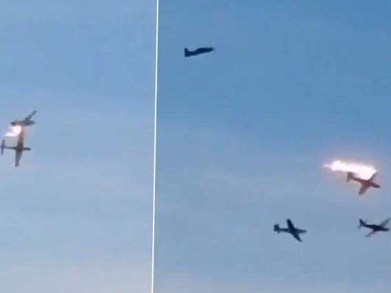 விபத்து தொடர்பான வீடியோக்கள் சமூக வலைதளங்களில் வைரலாகியுள்ளன. அதன்படி, பயிற்சியில் ஈடுபட்டு இருந்த விமானங்கள் ஒரே நேர்கோட்டில் பறந்து கொண்டிருந்தபோது, எதிர்பாராத விதமாக ஒரு விமானம் மற்றொன்றுடன் மோதியது. இதில் ஒரு விமானம் நடுவானிலேயே கொளுந்துவிட்டு எரியத் தொடங்கியது. அடுத்த சில நிமிடங்களில் இரு விமானங்களும் தரையில் விழுந்து நொறுங்கின.