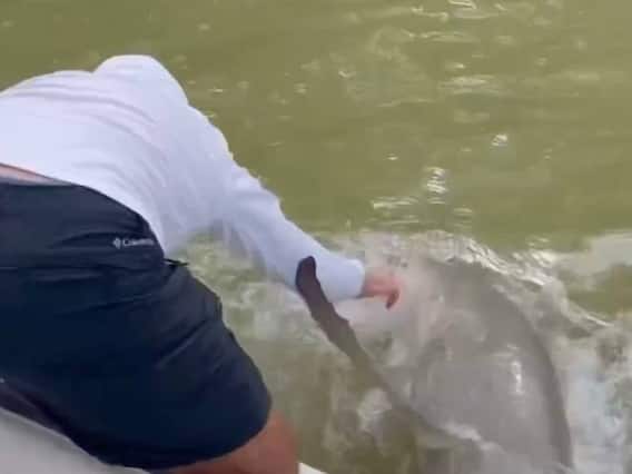 அமெரிக்காவில் மீன் பிடிக்கச் சென்ற ஒருவரை சுறா மீன் இழுத்து சென்ற வீடியோ இணையத்தில் வைரலாகி அதிர்ச்சியை ஏற்படுத்தியுள்ளது.