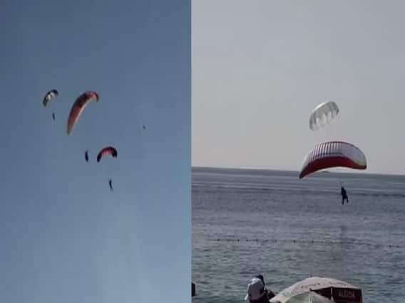 துருக்கியில் நடுவானில் பாராகிளைடிங்கில் ஈடுபட்ட வீரர்கள் சிக்கிக் கொண்டனர். இதனையடுத்து அவர்கள் கடலில் விழும் பரபரப்பு காட்சிகள் வெளியாகியுள்ளன.