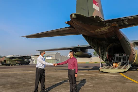 நாளொன்றுக்கு 3 லட்சத்துக்கும் அதிகமானோர் இந்தியாவில் கொரோனாவால் பாதிக்கப்படுகின்றனர். ஆக்சிஜன் தட்டுப்பாடு மற்றும் மருத்துவமனையில் படுக்கைவசதித் தட்டுப்பாடு கட்டுப்படுத்தமுடியாத நிலையை எட்டியுள்ளது. இந்த நிலையில் பிரிட்டன், அமெரிக்கா உள்ளிட்டப் பல்வேறு உலக நாடுகள் இந்தியாவுக்கு உதவிக்கரம் நீட்டியுள்ளன. அந்த வரிசையில் சிங்கப்பூர் அரசு இந்தியாவுக்கு 256 ஆக்சிஜன் சிலிண்டர்களை அனுப்பிவைத்துள்ளது. ஆக்சிஜன் சிலண்டர்களைத் தாங்கிய சிங்கப்பூர் விமானப்படையின் சி-130 ரக விமானங்கள் இரண்டை அந்த நாட்டு அமைச்சர் மாலிக்கி ஓஸ்மான் கொடி அசைத்துத் தொடங்கிவைத்தார்.