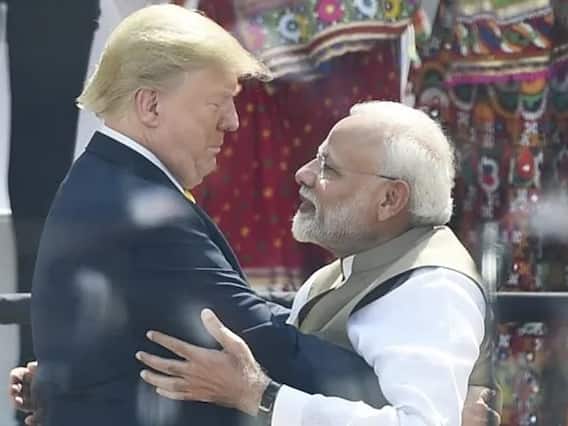 ஐந்து மாதங்களுக்குப் பிறகு, பிரதமர் மோடியின் சொந்த மாநிலமான குஜராத்திற்குச் டிரம்ப் சென்றார், அங்கு இருவரும் அன்புடன் கட்டிப்பிடித்து ஒரு புதிய கிரிக்கெட் ஸ்டேடியத்தில் ஒரு மெகா கூட்டத்தில் உரையாற்றினர்.