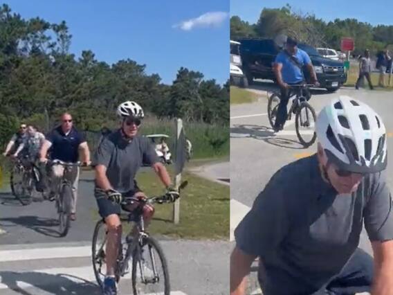 அமெரிக்க அதிபர் ஜோ பைடன் சைக்கிளில் இருந்து தவறி விழும் வீடியோ சமூக வலைதளங்களில் வைரலாகி வருகிறது.