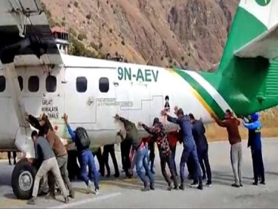 நேபாளத்தில் 20 க்கும் மேற்பட்ட பயணிகள் விமானத்தை தள்ளும் வீடியோ சமூக வலைதளங்களில் வைரலாகி வருகிறது.