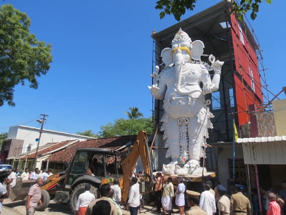 இந்தியாவில் முதல்முறையாக 32 அடி உயரமுள்ள அத்திவிநாயகர் சுவாமி சிலை வெள்ளோட்டம் நடைபெற்றது. 1 கோடி ரூபாய் மதிப்பில் 16 டன் எடை கொண்ட அத்தி விநாயகர் ஊர்வலத்தில் திரளான பக்தர்கள் பங்கேற்றனர்.