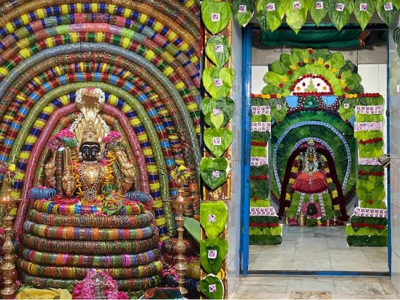 இந்த நிலையில் சேலம் மாநகர் அஸ்தம்பட்டி பகுதியில் உள்ள மாரியம்மன் திருக்கோவிலில் வளையல்கள் வைத்து வழிபாடு நடத்திய பக்தர்களின் வளையல்கள் அனைத்து வளையலகளையும் ஒன்று சேர்த்து ஒரு லட்சத்து 8 வளையல்களை கொண்டு அம்மனுக்கு சிறப்பு அலங்காரம் செய்யப்பட்டது. வளையல் அலங்காரத்தில் மாரியம்மன் வண்ணங்கள் நிறைந்து கம்பீரமாக காட்சியளித்தார். இந்த சிறப்பு அலங்காரத்தில் அம்மனுக்கு சிறப்பு பூஜை நடத்தப்பட்டது. மேலும் அம்மனை கண்டு பக்தர்கள் பக்தி பரவசத்தில் ஆழ்ந்தனர். பின்னர் வழிபட்டு செல்லும் பக்தர்கள் அனைவருக்கும் அலங்காரம் செய்யப்பட்ட வளையல்களை பக்தர்களுக்கு வழங்கினர். மேலும் கோவில் முழுவதும் வளையல்களைக் கொண்டு அலங்காரம் செய்யப்பட்டு இருந்ததைக் கண்டு பக்தர்கள் வியந்து பார்த்து செல்கின்றனர்.