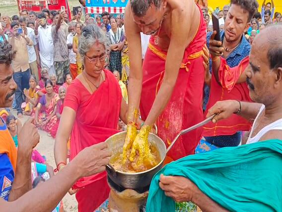 திருவண்ணாமலை (Tiruvannamalai News): திருவண்ணாமலை மாவட்டம் ஆரணி அடுத்த துரிஞ்சிகுப்பம் கிராமத்தில் பழமை வாய்ந்த ஸ்ரீ ஆதிபராசக்தி ஆலயம் இருந்து வருகின்றது. இந்த ஆலயத்தில் வருட வருடம் ஆடிப்பூரத்தை முன்னிட்டு அம்மனுக்கு பால்குடம் எடுத்தல், கூழ்வார்த்தல், தீமிதி திருவிழா போன்ற நிகழ்ச்சிகள் நடைபெறும். அதேபோல் கொதிக்கும் எண்ணெய் சட்டியில் வடை சுட்டு வெறும் கைகளால் எடுத்து அம்மனுக்கு நேர்த்திக்கடன் செலுத்துவது வழக்கமாகும். அதைத் தொடர்ந்து இந்த ஆண்டிற்கான ஆடி முதல் வெள்ளி ஆடிப்பூரத்தை முன்னிட்டு இன்று துரிஞ்சுகுப்பம் கிராமத்தில் உள்ள பழமை வாய்ந்த ஸ்ரீ ஆதிபராசக்தி ஆலயத்தில் 3 பூசாரிகள் 21 நாள் விரதம் இருந்து கொதிக்கும் எண்ணெய் சட்டியில் வடை சுட்டு அதனை வெறும் கையால் எடுக்கும் காட்சி அனைவரையும் வியக்க வைத்தது.