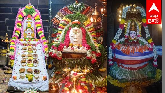 இந்த நிலையில் விழுப்புரம் மாவட்டம் ( Villupuram) ஆதிவாலீஸ்வரர் சிவன்கோயிலில் மூலவர்க்கு 50 கிலோ அன்னத்தாலும், பழங்கள் மற்றும் காய்கறிகள் கொண்டு சிறப்பு அலங்காரம் செய்யப்பட்டு, தீப ஆராதனைகாண்பிக்கப்பட்டது. ஐப்பசி மாதம் பௌர்ணமி நாளில் வரும் அன்னாபிஷேகம் மிகவும் சிறப்பானது. இறைவன் சிவபெருமானுக்கு செய்யப்படும் அன்னாபிஷேகம் எல்லாவற்றையும் விட அற்புதமானது என்கிறது வேதம். பஞ்சபூதம் நிலம், நீர், காற்று, ஆகாயம், நெருப்பு என பஞ்சபூதங்கள் சேர்ந்ததால் ஆகிறது. பஞ்சபூதங்களால் ஆன இந்த அன்னம் மனிதனுக்கு இன்றியமையாத உணவாக விளங்குகிறது. சிவ பெருமானுக்கு அன்னத்தால் அபிஷேகம் செய்து வழிபடுவதே அன்னாபிஷேகம் ஆகும். இன்றைய தினம் நாம் அபிஷேகம் செய்யும் ஒவ்வொரு பருக்கை அன்னத்திலும் சிவ பெருமான் எழுந்தருளி காட்சி தருவதாக ஐதீகம் ஆகும்.