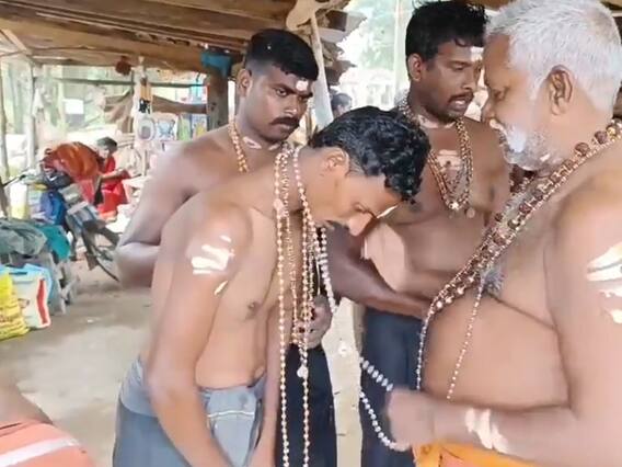 தொடர்ந்து ஐயப்பனுக்கு பல ஆண்டுகளாக மாலை அணிந்து விரதம் இருக்கும் நபர்கள் குருசாமிகளாக , முதல் முறையாக மாலை அணிந்து ஐயப்ப பக்தர்களாக விரதம் கடைப்பிடிக்க உள்ள கன்னிச்சாமிகளுக்கு சரணம் ஐயப்பா சரணம் பாடி மாலை அணிவித்தனர். கார்த்திகை ஒன்றாம் தேதி இந்தாண்டு கரி நாளாக விளங்குவதால் அதிகாலை பிரம்ம முகூர்த்த வேளையிலேயே ஐயப்ப பக்தர்கள் மாலை அணிந்து கொண்டனர்.