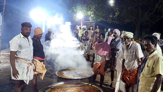 திண்டுக்கல் மாவட்டம், நத்தம் அருகே கோயில் திருவிழாவில் ஆண்கள் மட்டும் பங்கேற்ற கறி விருந்து வெகு விமரிசையாக நடைபெற்றது.