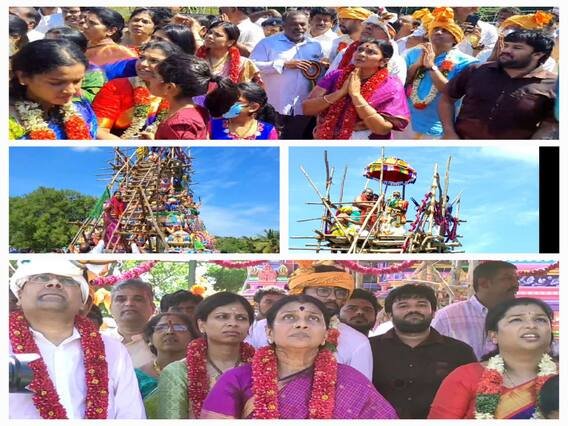 அதனை அடுத்து, துர்கா ஸ்டாலின் பச்சை கொடியசைக்க பிள்ளையார்பட்டி கற்பக விநாயகர் கோயில் பிச்சை குருக்கள், திருப்பரங்குன்றம் ராஜா பட்டர் ஆகியோர் தலைமையில் சிவாச்சாரியார்கள் பூஜிக்கப்பட்ட கடங்களில் இருந்த புனித நீரை விமான கலசங்களில் ஊற்றி கும்பாபிஷேகத்தை நடத்தி வைத்தனர்.