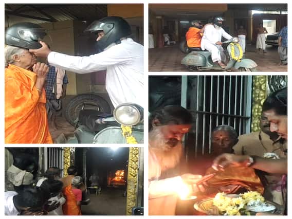 கர்நாடக மாநிலம் மைசூர் போகாதி பகுதியை சேர்ந்தவர் தட்சிணாமூர்த்தி என்பவரின் மகன் 44 வயதான கிருஷ்ணகுமார். தனியார் எம்.என்.சி நிறுவனம் ஒன்றில் கார்ப்பரேட் டீம் லீடராக பணியாற்றி வந்த கிருஷ்ணகுமார், தனது தந்தையாரின் இறப்பிற்கு பிறகு தனது தாயார் சூடா ரத்தினம்மாவின் விருப்பத்தை நிறைவேற்றும் விதமாக, தந்தையாரின் ஸ்கூட்டரில் அமர வைத்து, இந்தியா முழுவதும் உள்ள கோயில்களுக்கு மாத்ரு சேவா சங்கல்ப புனித யாத்திரை பயணம் மேற்கொண்டு வருகிறார்.