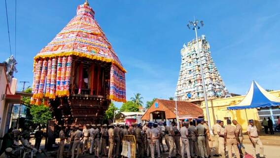 கலவர தடுப்பு வாகனங்களும் நான்கு ரத வீதிகள் சுற்றிலும் நிறுத்தப்பட்டுள்ளன. தேரோட்டத்துக்காக தேரை அலங்கரிக்கும் பணி நடந்து வருகிறது. தேர் வடம் பிடித்து இழுக்க 4 நாட்டு பகுதிகளை சேர்ந்த அனைத்து சமூகத்தினருக்கும் அடையாள அட்டை வழங்கப்பட்டுள்ளது. சுமார் 600 நபர்கள் மட்டுமே தேர் வடம் பிடித்து இழுக்க அனுமதிக்கப்படுவர். இதனால் மற்றவர்கள் அத்துமீறி நுழைவதை தடுக்க தேரோடும் வீதிகளில் இருபுறமும் தடுப்புகள் அமைக்கப்பட்டுள்ளது. நாளை வெள்ளிக்கிழமை காலை 6 மணிக்கு தேரோட்டத்தை தொடங்கி 8 மணிக்குள் முடிக்க திட்டமிடப்பட்டுள்ளது.